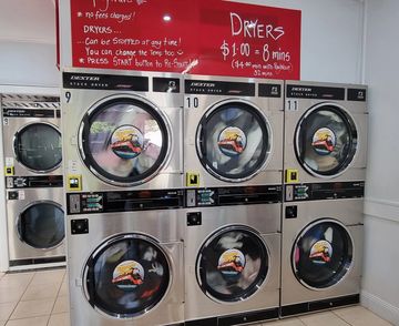 2 New MEGA Dryers that hold approx 4 standard baskets. $1.00 = 6 mins